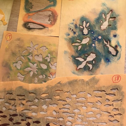 友禅 シルク 大判スカーフ 作品名 bloom 制作途中