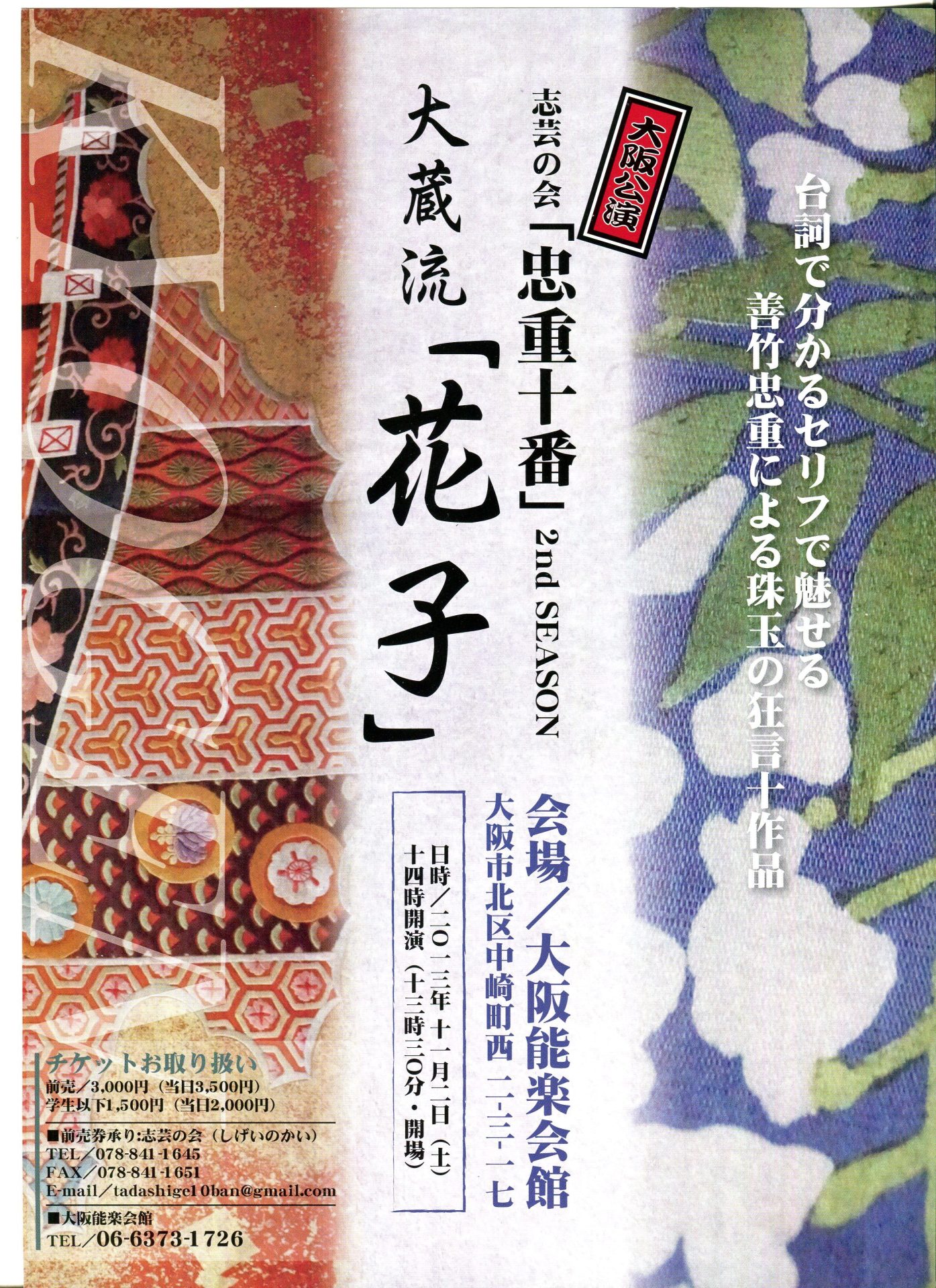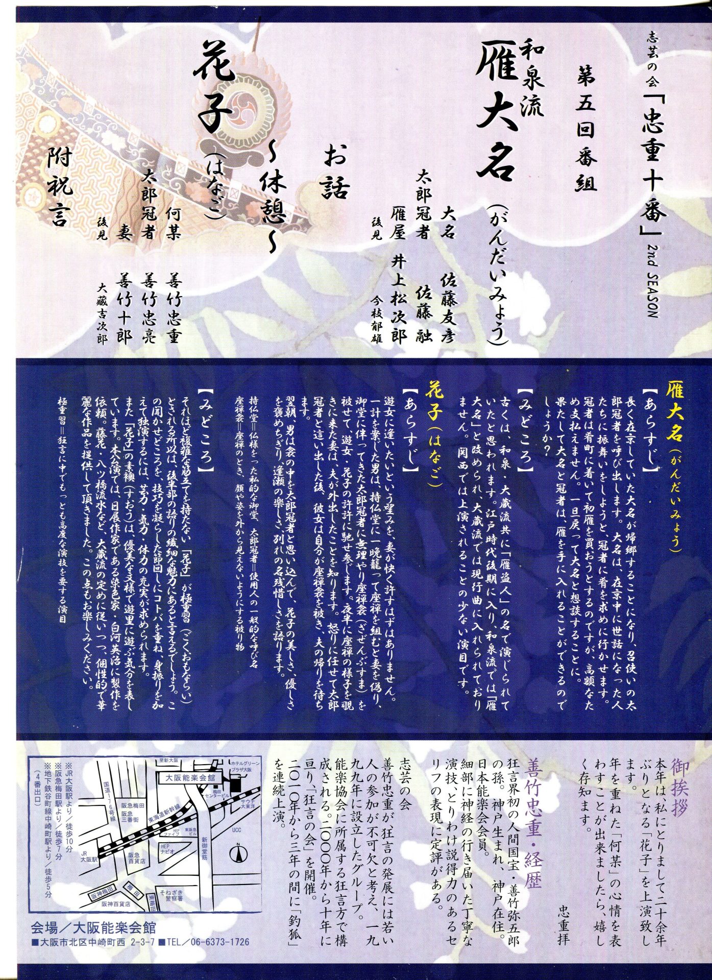 大蔵流の定めに則り、 藤花・八ツ橋流水などを
