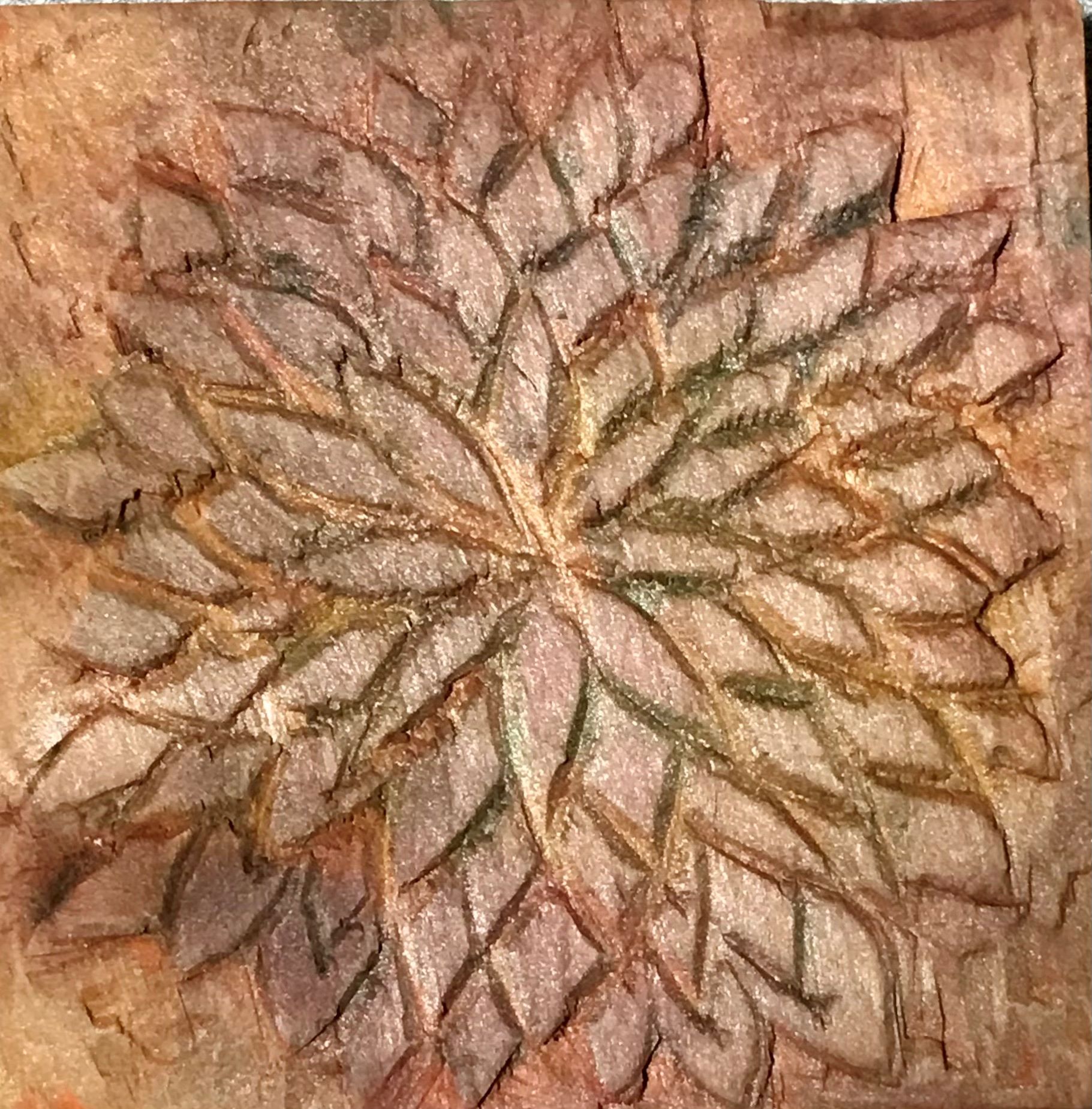 写真は私が彫った 版木とそれを用いた染めです。 木版を用いた染色には 擦れたり滲んだりして、 大らかでどこか親しみのある 表情が魅力です。 染色の中には高度なテクニックを あまり必要としないけれども 良いものも多く存在します。 染めは技ではなく 楽しむ心が大切だと思います。 この作品は 技術ばかりに凝った染めとは 対極にある美しさがあると 自負しています。 布の組織による凹凸や版木の 柔らかな質感とが相まって 生まれる染めは 素朴で染色の原点を 感じさせてくれます。